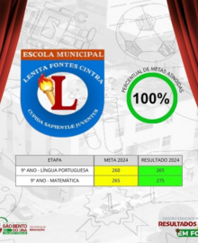 ⭐️Confiram quais escolas atingiram 100% das metas estabelecidas, as quais parabenizamos por este resultado brilhante que reafirma: investir em Educação transforma vidas e constrói um futuro melhor!