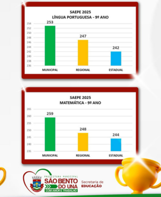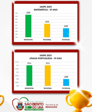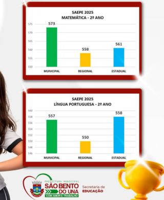🤩Nosso município alcançou desempenho acima das médias regional e estadual, em Língua Portuguesa e Matemática, reafirmando o compromisso com uma educação pública de qualidade.